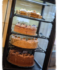 Freitags, samstags und sonntags (sowie gelegentlich auch unter der Woche) servieren wir frisch gebrühten Kaffee mit hausgemachten Kuchen und Torten.